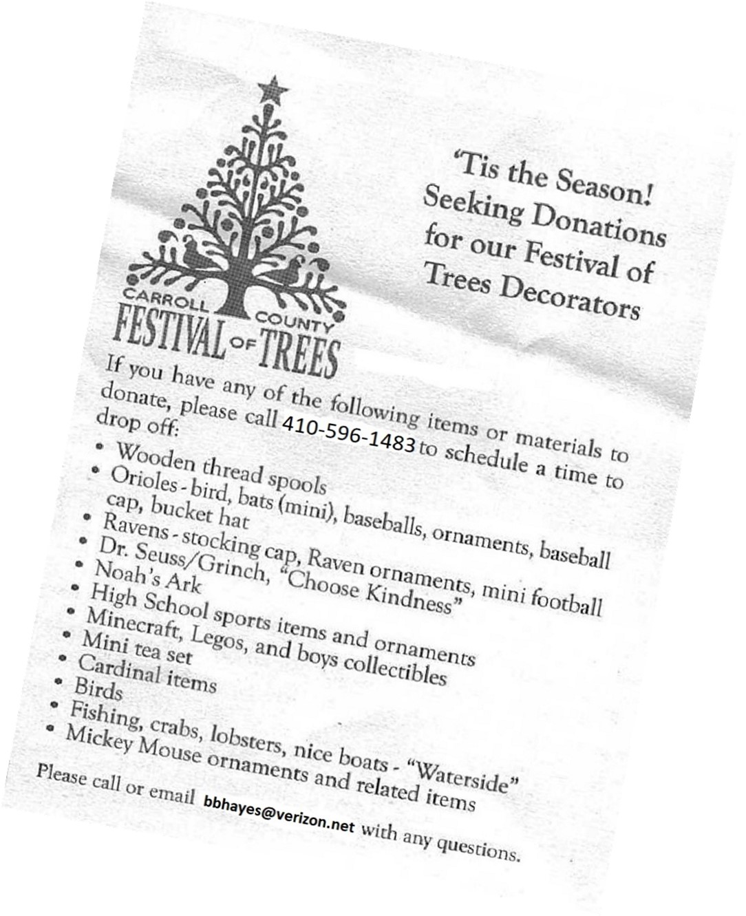 The Shepherd’s Festival of Trees is seeking donations for decorating trees. If you have any